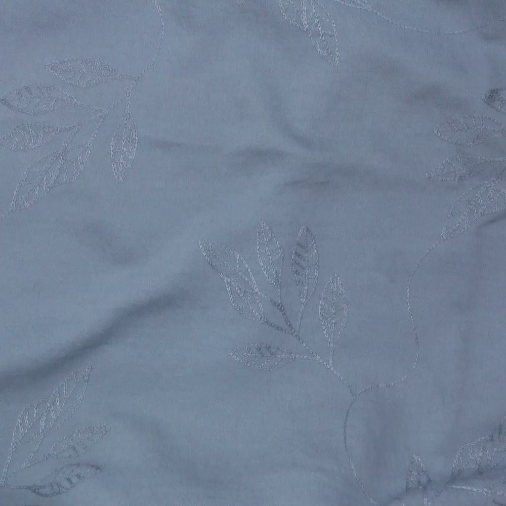 Une broderie ton sur ton est réalisée pour former des branches de feuilles.